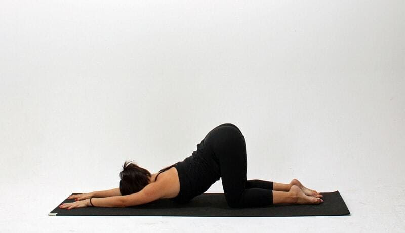 | Begin in tabletop pose with the knees hip distance wide.Exhale and walk the hands far forward, keeping them shoulder distance wide. Keep the hips over the knees.Release the chest toward the floor. If possible, rest the forehead on the floor.Breathe while holding the pose. |