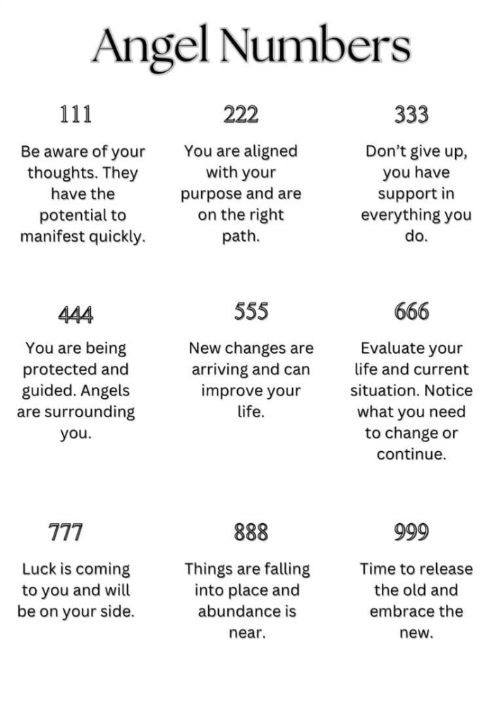 Remember: These are just a few interpretations of common angel numbers. Trust your intuition and pay attention to how these numbers make you feel. The most important thing is to use these messages as a source of inspiration and guidance on your own unique journey.