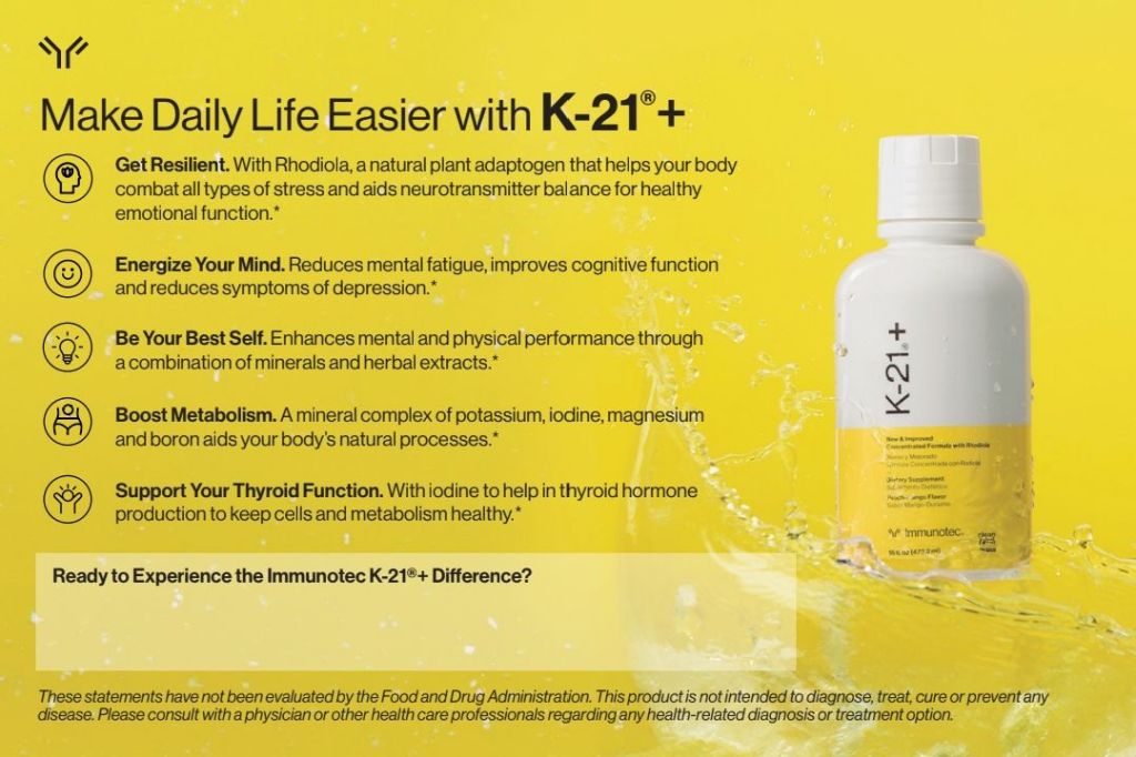 Life can be a whirlwind, throwing all sorts of stress our way. But what if you had a secret weapon to help you stay focused and handle it all like a champ? Enter K-21+, the amazing mineral herbal blend designed to support your natural defenses against stress!